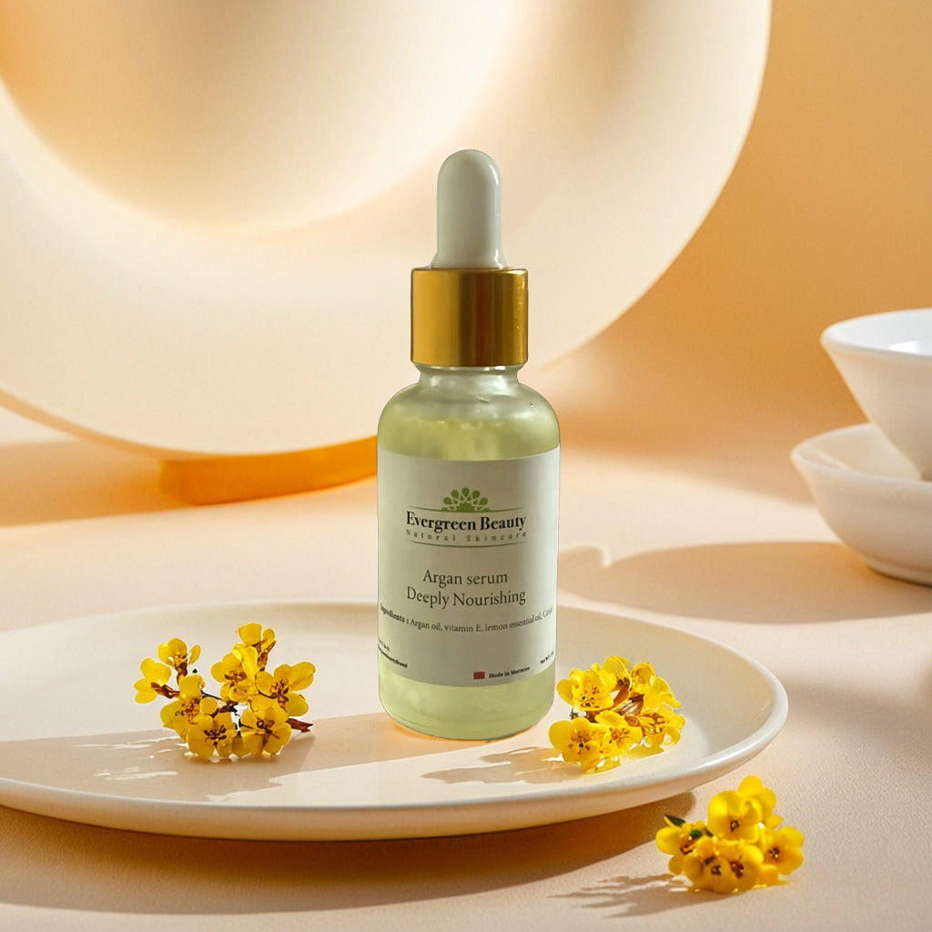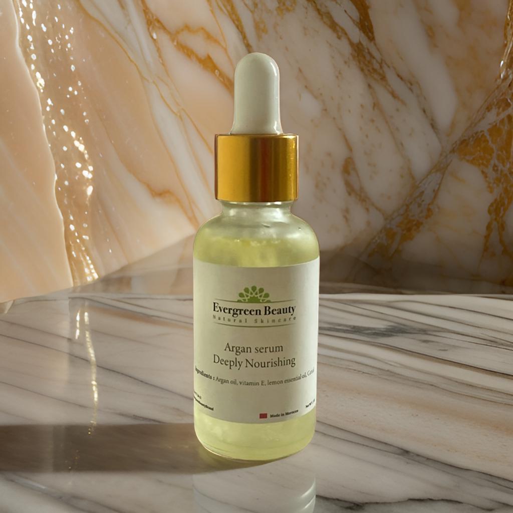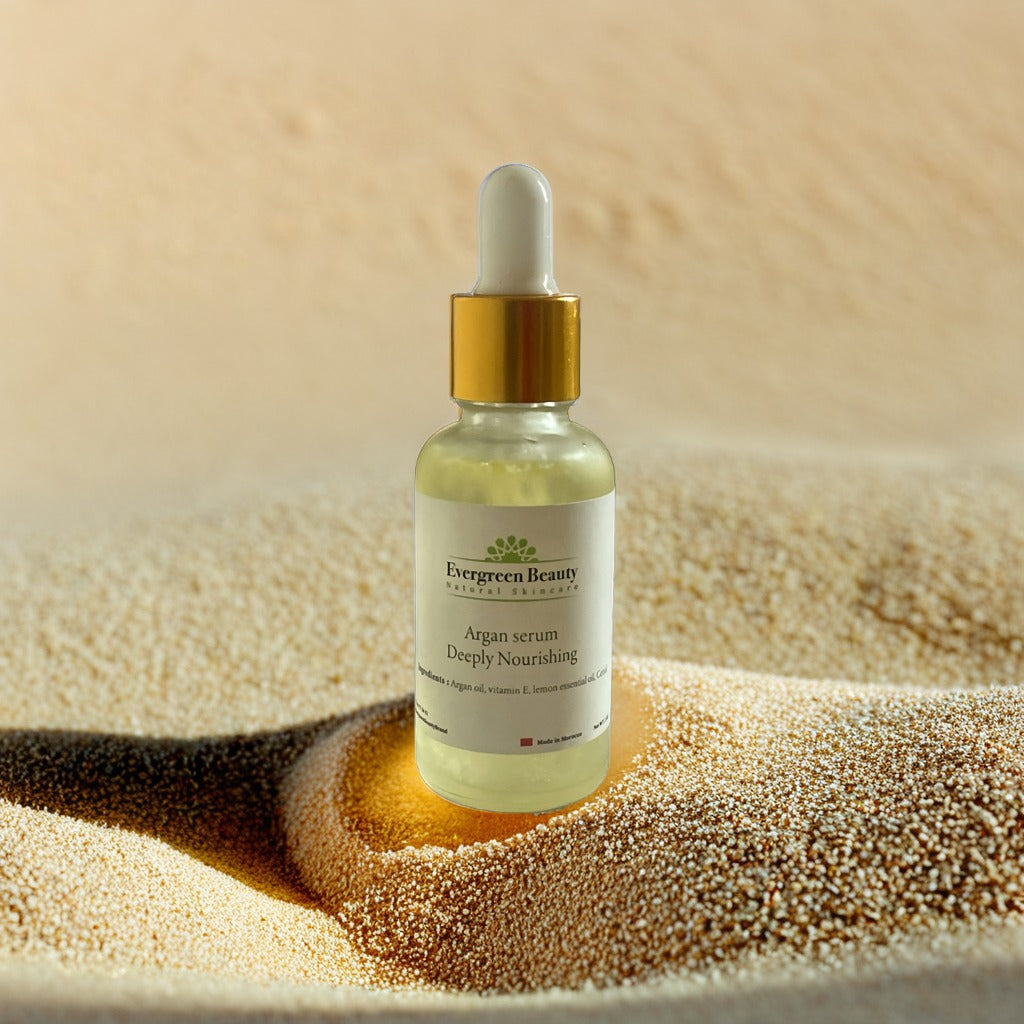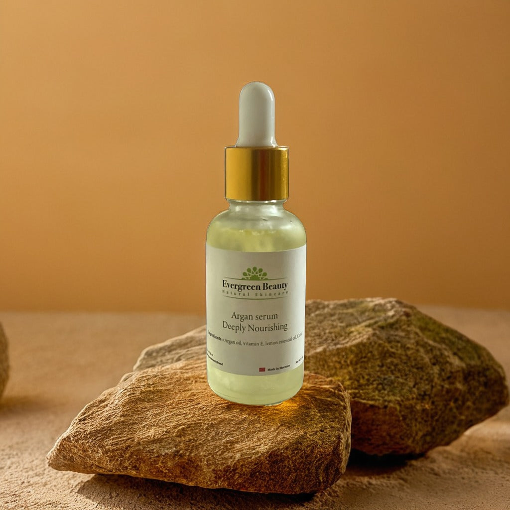 Argan Serum with Vitamin E, experience the beauty benefits of Moroccan argan oil. This natural oil has been used for centuries for its moisturizing and nourishing properties. Use it on skin for a nourished and radiant glowing skin.